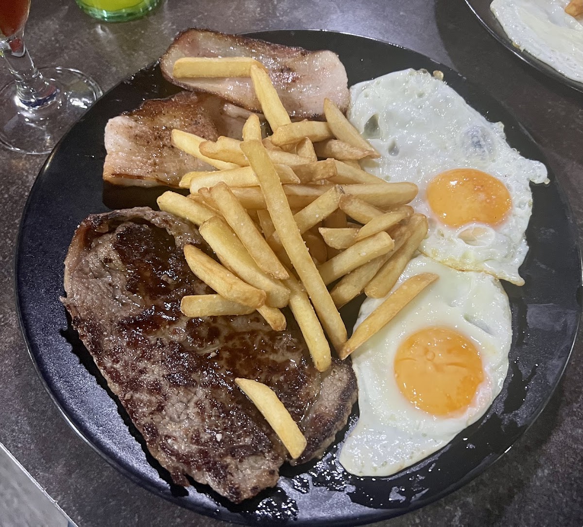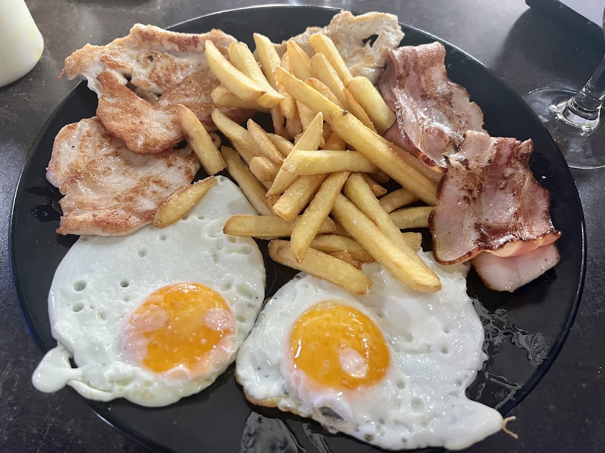 The atmosphere here is practical and unpretentious, with a mix of regulars who come for the straightforward, hearty plates like their popular Plato Combinado de Ternera y Bacon or Hamburguesa con Huevos Fritos y Bacon. These combo plates make it a reliable place for a filling lunch or early dinner without fuss. The terrace invites a slower pace, especially on sunny afternoons when the street buzz adds to the casual, communal vibe.